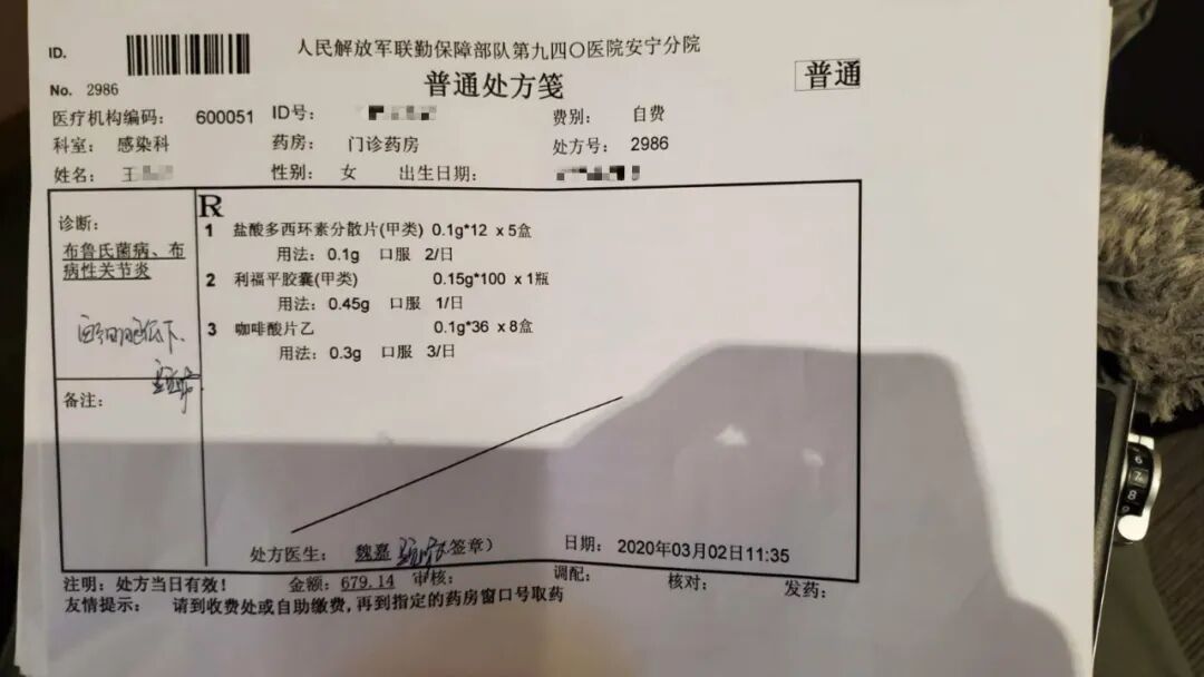 李女士:5月份开始手指头也疼,膝盖也疼,我去医院里做了风湿,化验了也好着,我就把这布病的事儿说了,我说我是盐场堡(兰州生物药厂周边)的。医生立马说,你去旁边科室检查去,你不是这个。我实在疼的不行了,我就到内蒙一查,人家大夫就确诊了布鲁氏菌病。