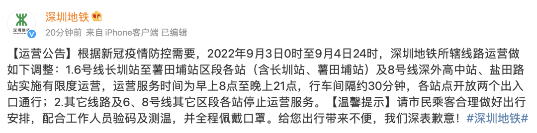 9月2日,深圳龙华、龙岗、福田、罗湖、南山等区相继发布通告,自9月3日0时至9月4日24时期间,区内全区全员核酸检测。