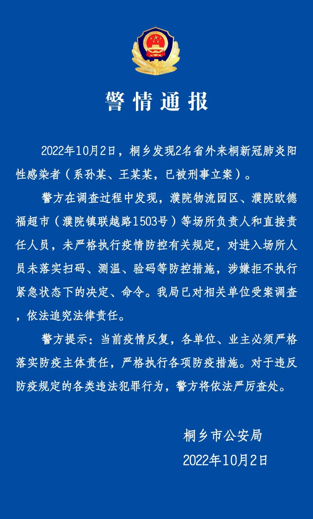 10月2日凌晨,在集中隔离点发现两例外省来濮新冠肺炎阳性感染者(2人系同行人员),目前已转至定点医院治疗。排查到的密接、次密接均已落实管控。10月2日,濮院镇开展全域全员核酸检测,结果均为阴性。为切实保障人民群众生命安全和身体健康,有效阻断疫情传播,经研究决定,自10月3日零时起,对濮院镇镇区实行临时管控措施,现公告如下: