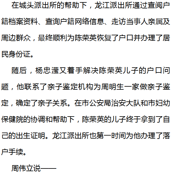 龙江派出所为民解忧,为民服务没得说,没有他们,陈荣英一家的‘黑户’问题不会这么快得到解决。