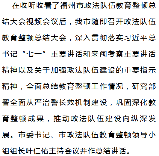 在听取全市政法队伍教育整顿工作情况通报后,叶仁佑指出——