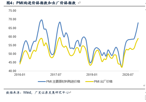 购进和出厂价格指数均大幅上行,对应PPI仍处于再通胀周期中。工业品价格弹性的扩大是一个值得持续跟踪的线索。