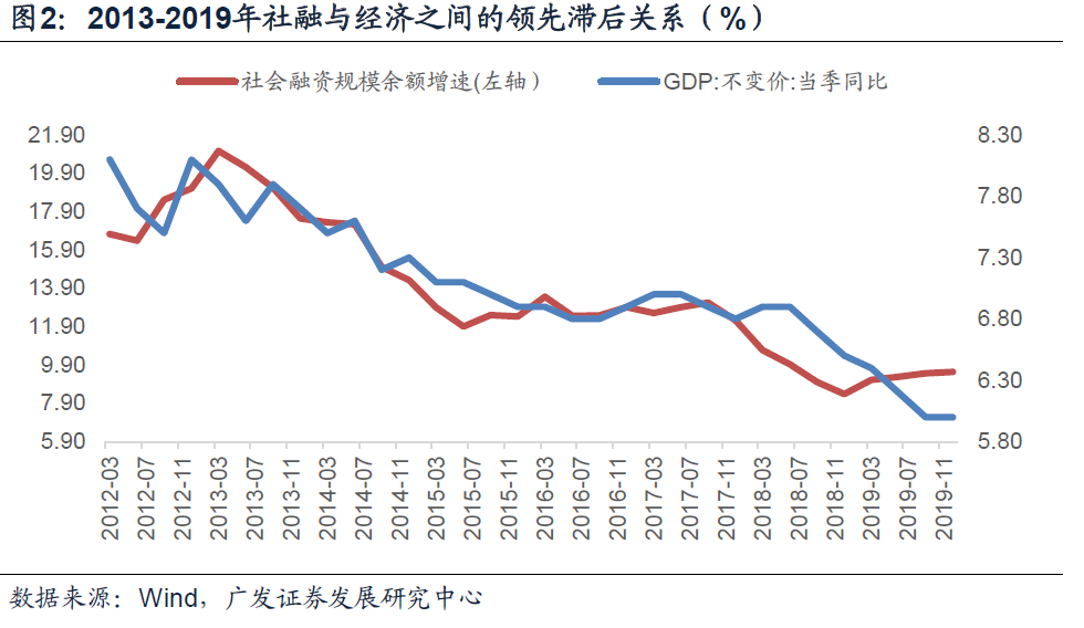 多数研究以历史上社融与经济之间的领先滞后关系线性外推信用收缩对经济的影响。但从2007年至2019年的数据来看,信用收缩和经济回落之间并没有稳定的领先滞后关系。信用收缩对经济的影响如何,多久对增长的影响显性化,关键还在于所处时段经济增长的驱动结构。