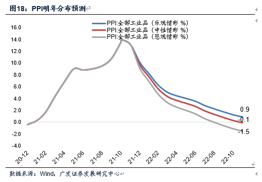 悲观情形参考动力煤、螺纹钢期货价回落至疫情期间水平,IPE布油价回落至55美元/桶即去年四季度水平(即海外疫情防控拐点仍未探明阶段),则悲观情形下明年PPI均值为2.3%,四季度正式进入负值区间,年末PPI或落于-1.5%左右。