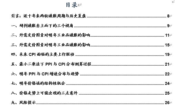 第五,CPI上行的驱动逻辑有五,其一是低基数效应贯穿明年多数时段;其二能繁母猪存栏去化进程加速,中期去产能节奏仍是支撑猪价的主要因素;其三,拉尼娜及冷冬对农产品价格存在或有脉冲;其四,稳增长背景下,消费链与服务业存在周期性修复;其五,在上游成本刚性传导背景下,核心通胀中枢面临温和抬升压力。