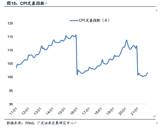 基数效应影响下CPI或触底回升。基期轮换导致年初CPI定基指数显著偏低,以2020年作为参照系标准,上半年CPI定基指数落于100.2~101.5的十年底部区间;因此在不考虑外生新涨价因素的前提下,CPI翘尾效应将在明年上半年拉动CPI逐级走高,下半年翘尾效应影响减弱但不排除猪价、核心CPI触底回升概率增加,整体预计明年CPI同比处于逐级上行区间。