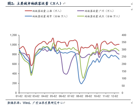 Wind数据显示:12月全国9大城市地铁客运量环比走弱。其中南京、武汉、广州客运量相较11月末数据小幅回落,截止第三周客运量周度日均分别录得239万人(11月末253万人)、298万人(11月末300万人)、813万人(11月末873万人),大致相当于7月中旬疫情未发生前的87%、95%、103%。本月上海地铁日均客运量升至1036万人,大致相当于7月中旬数据的95%。近期全国局部地区出现偶发疫情,客运量作为居民生活半径与社交距离的影子指标,12月整体数据仍需密切跟踪。
