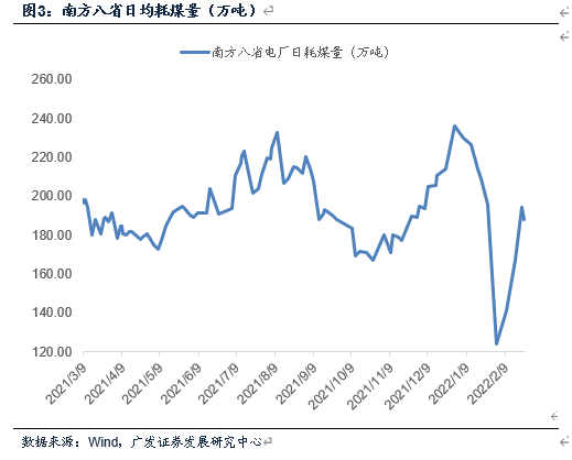 据鄂尔多斯煤炭网数据,2月发电耗煤数据自2月2日(大年初二)的124万吨水平稳步回升,2月10日、17日分别回升至141、167万吨;下旬耗煤数据回升斜率进一步加快,2月22日、24日录得194、188万吨。此外根据煤炭市场网监测数据显示,截至目前尔多斯全市生产煤矿232座,全市生产煤炭282.7万吨,销售煤炭279.13万吨。供应已回升至节前高位水平。2月下旬,伴随北方地区降雪基本结束,晋陕蒙等主产地供应逐步释放;此外需求端居民用电偏强运行、叠加京津冀等周边地区高耗能企业逐步复产,整体用煤需求及日耗水平有所释放。受供需两旺格局影响,目前终端采购积极性有所增加,港口市场交投活跃度亦不断提升。
