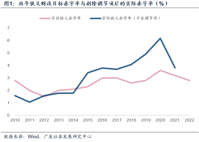 因目标狭义赤字规模较市场预期偏低,故如若我们测算理论上的广义赤字率,则2022年理论广义赤字率将从2020-2021年的7.4%-6.3%下行1-2个百分点左右,录得5.3%左右。
