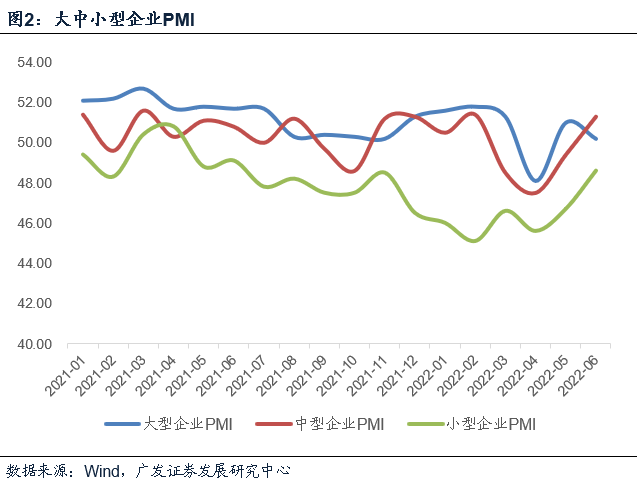 一个现象是,中型企业景气度改善最为明显,绝对景气度也最高,反映需求端好转、成本端下降的叠加影响;大企业景气度在临界点以上,但6月环比5月反而有所下降,我们理解和很多大型企业是资源型企业有关;小企业景气度好于前期,但相对来说景气度最低,主要与面对供给冲击的抵抗能力偏弱有关,其恢复是一个更长的过程。