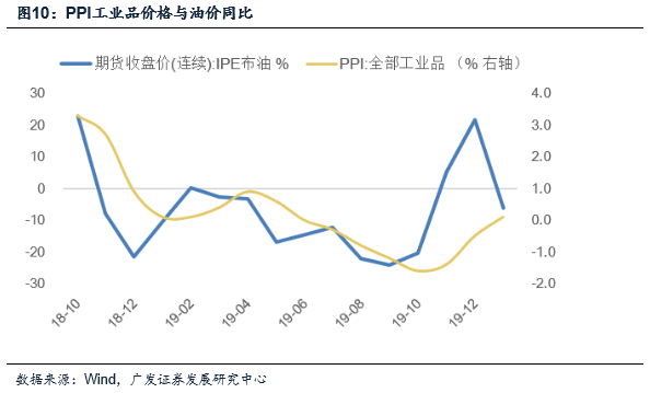 2)对于PPI而言,疫情对于工业品价格(采掘、原材料、加工、生活)各个环节均存在负面冲击,在此我们化繁为简选取油价对PPI所受影响进行弹性测算。假定布伦特原油价格一季度较1月中旬高点下行16%,后三季度回升至2019年均价。则PPI总体趋势仍然前低后高,会有两个月影响脉冲偏大,一季度进入负值区间对应于全年中枢性底部,全年均值0.9%。