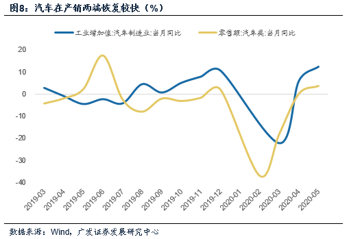 5月汽车业工业增加值增速为12.2%,较上月抬升6.4个点;汽车零售额增速为3.5%,较上月抬升3.5个点。考虑到基数下降,汽车零售数据这一表现算是中性。