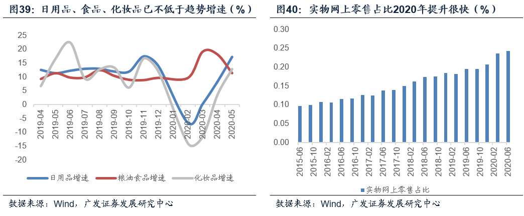 第二,疫情期间商场、超市等消费渠道以及大部分服务类消费受到约束,在疫情后也确定会逐步好转,其中部分门类也会存在补偿性消费;