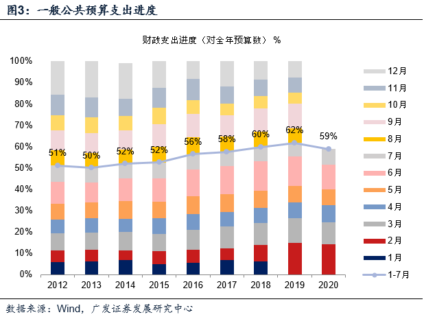 整体来看,7月支出的大幅增长,主要受益于同期的收入回暖与前期的堰塞湖效应。由于1-7月支出进度仍慢于去年同期3个百分点,因此8-12月支出进度仍有不断加快以达预算目标的必要性,预计支出增速仍将呈上行趋势。