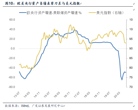 ③美元下行周期:如前所述二季度弱美元隐含美联储货币政策加码扩张,美元回落周期下工业品价格持续回升。历史上美元贬值期通常伴随联邦财政+贸易双赤字,按照当前国会预算办公室3.7万亿+1万亿额外财政刺激计划,届时财政赤字占GDP比重将突破20%,贸易加权美元指数或趋势性承压。此外从发达国家货币政策的视角考量,美元走弱是美国相对欧洲债务货币化程度更高,联储相对欧央行扩表速度更快的体现。二季度以来全球市场稳定后流动性托底的必要性下降,欧美央行扩表速度均出现趋势性放缓。但考虑到超过20%的联邦政府开支仍需通过央行货币化融资,因此美联储扩表力度相对欧央行更为激进,美元阶段性回落趋势或难以于短期证伪,本轮工业品价格回升趋势亦有望延续。