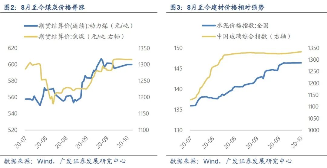 ①建材方面,华东、华南地区前期受汛期冲击下的建筑类需求集中回补,带动区域水泥价格反弹;玻璃涨价逐步向上游传导,冶金印染、水处理等工业部门刚需拉动纯碱表观需求。