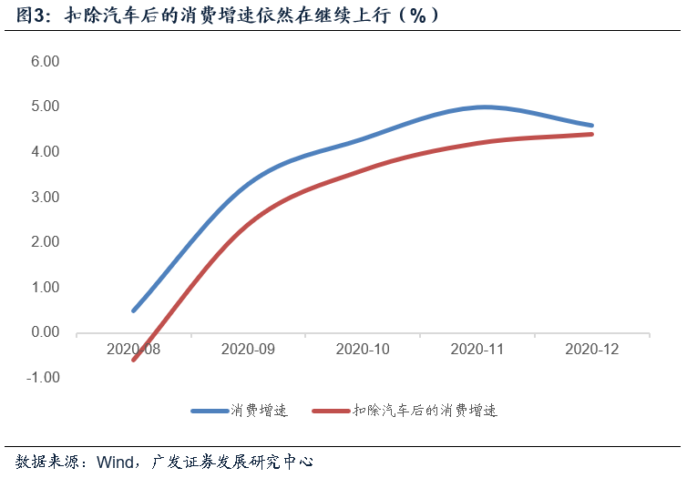 但实际上这一数据主要来自于汽车零售的拖累。12月汽车零售同比增速只有6.4%,低于7-11月的11-13%。除汽车之外的零售同比增速为4.4%,仍在继续加速。