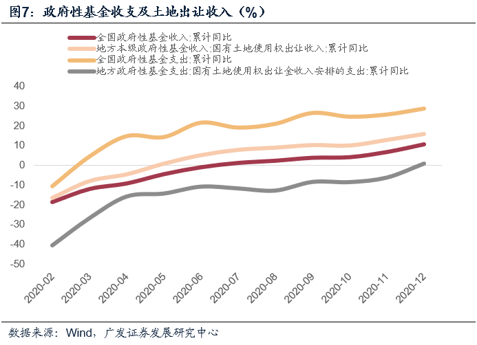 第七,2020年政府性基金预算收入同比增长达10.6%,主要源于土地市场及地产销售良好表现;支出端同比增长28.8%,略低于年初预算,或与年内各项收入(专项债及特别国债发行收入等)尚未形成完全支出有关。