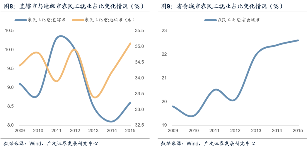 第七,农民工是我国劳动市场的最重要组成部分之一,也是中国经济发展过程中最重要的变量之一,其总量及结构的边际变化都将对未来产生深远影响。基于前述分析,我们倾向于以下几点推论: