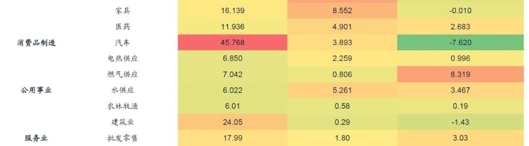 3.中游装备制造业、下游食品相关制造业、汽车制造“疫情缺口”的收敛速度在下半年开始出现边际回落。