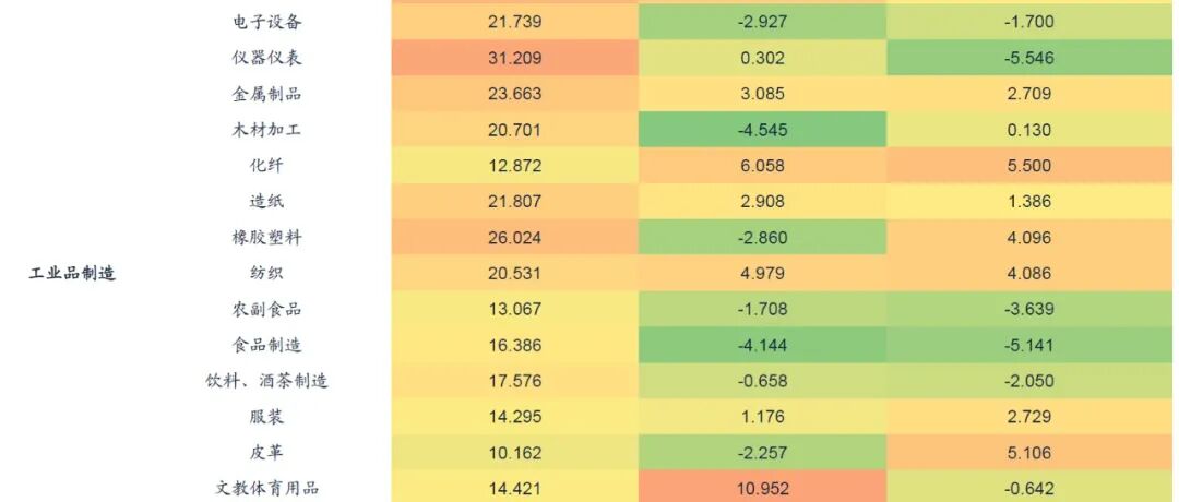 从2021年全年的维度来看,我们需要关注在当前为止还存在“疫情缺口”的行业,例如燃料链条的油气开采、加工和燃气供应,服装链条相关的服装、皮革、化纤,以及非金属矿等。