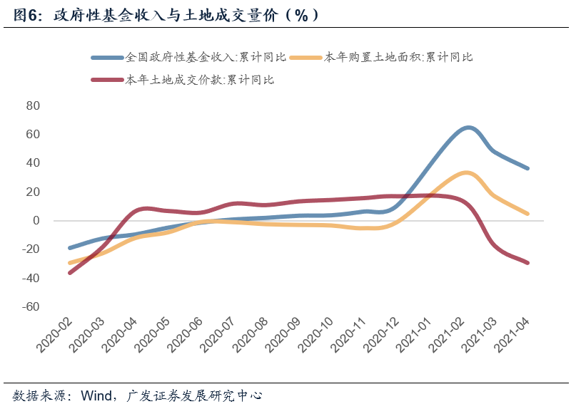 土地财政始终是广义财政的重要组成部分,也是地方投资的重要资金来源。4月的政府性基金预算收入增速呈较大幅度回落,由前期的23.1%回落至9.2%,其中的国有土地出让收入也由前期的19.1%回落至4.1%。一则可能是去年土地收入的递延效应开始放缓,二则同期的土地市场数据也确呈一定幅度的降温,量价两端均有所回落(图)。