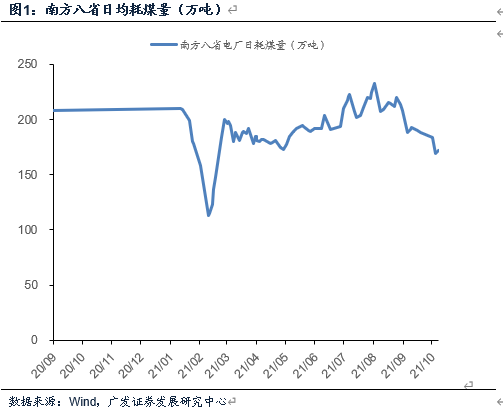 10月上旬南方八省电厂日耗煤整体进一步低于9月。趋势上看10月9日、12日数据低于9月最后一周,而10月15日均耗煤初步企稳。从9月用电量数据已略高于8月看,9-10月耗煤的连续下降应主要是供给端原因。 10月8日国常会强调主要产煤省和重点煤企要按要求落实增产增供任务,后续关注耗煤数据是否会边际企稳,它是供给能否改善的一个影子指标。10月15日山西省终止省级防汛IV级应急响应,前期部分关停煤矿在确保安全的前提下,日前已逐步恢复生产。