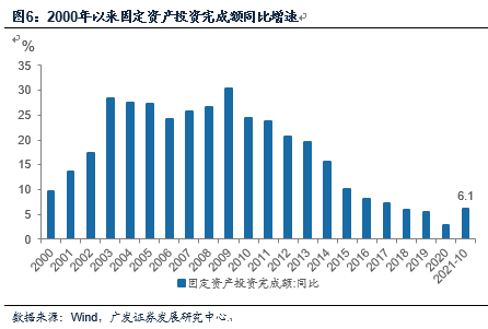 具体看工业。在9月环比接近0增长之后,10月工业增加值环比上行至0.39%。这部分上源于供给约束好转,但部分也与低环比基数有关,且即使这一环比速度,仍然显著低于一季度的0.63%、二季度的0.51%。从主要工业品来看,原煤产量同比为4%,是年内最快,显示伴随保障能源供给政策的推进,煤炭供应显著好转;但“双碳”既定规划和短期电力仍偏紧的背景下,粗钢、钢材、有色、水泥等高耗能产品产量增速仍在进一步下降。粗钢产量同比已经是-0.7%,提前锁定“同比下降”的年度目标。发电量同比增速只有3.0%,仅高于8月,处于年内次低。