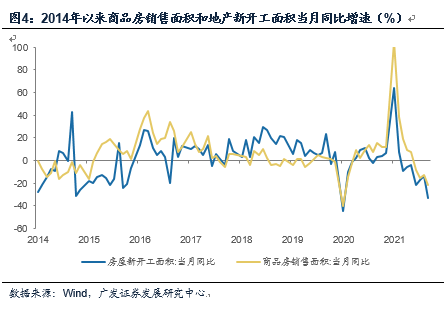 2014-2015年地产系指标曾经历过一轮全面回落,但当时错位特征比目前明显。地产销售2014年4-11月处于低位位置,最低单月销售增速为-16.4%;地产新开工2014年11月开始回落,2014年11月-2015年11月处于低位位置,最低单月新开工增速为-31.2%。