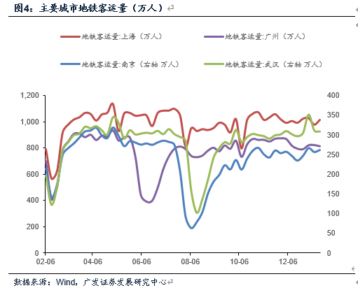 1月中上旬全国主要城市周度日均地铁客运量相对平稳。其中南京、武汉、广州客运量相较12月末数据小幅回升,截止第三周客运量周度日均分别录得261万人(12月末247万人)、308万人(12月末304万人)、813万人(12月末790万人)。