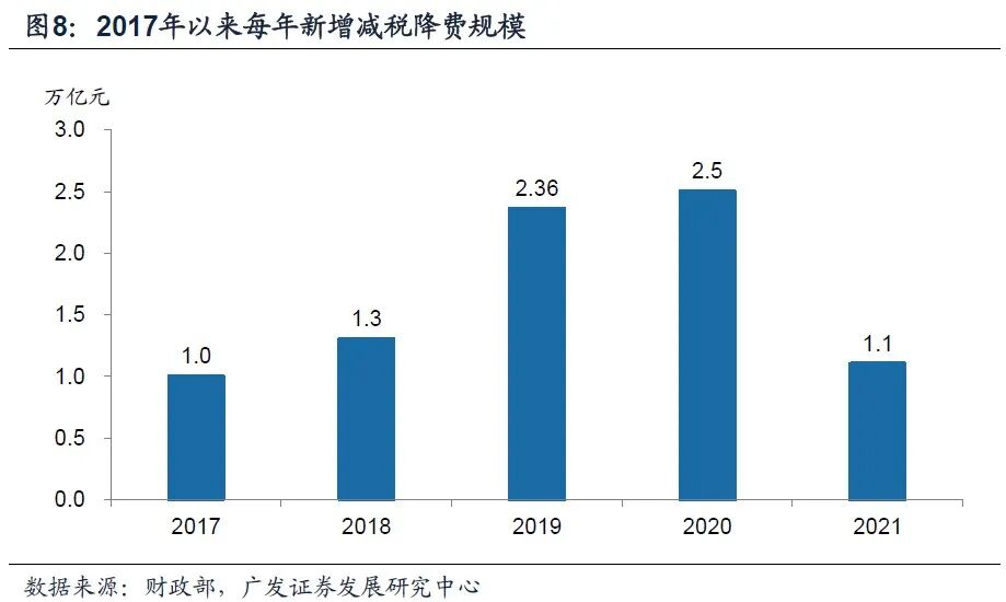 2021年新增减税降费1.1万亿,2022年实施新的更大力度组合式减税降费。