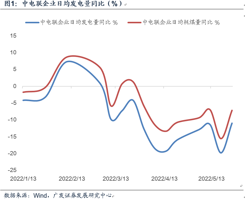 据中电联口径数据:5月6日-12日、5月13日-5月19日、5月20日-26日中电联燃煤发电企业日均发电量同比读数录得-11.4%、-19.8%、-11.0%(4月8日-14日、4月15日-21日、4月29日-5月5日同比读数分别为-19.3%、-16.0%、-12.9%);中电联企业日均耗煤量同比分别录得-7%、-15.6%、-7.2%(4月8日-14日、4月15日-21日、4月29日-5月5日同比读数分别为-13.4%、-10.8%、-9.4%)。