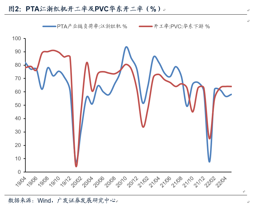 上下游行业开工率多数转暖。Wind数据显示:截止5月第四周,全国高炉开工率录得83.8%,相较4月末环比回升2.9pct,相较去年同期回升2.8%,受保供稳价以及稳定生产等政策指引,大中型钢企产能释放相对稳定。焦化企业开工率显著回升,第四周读数升至79.8%,相较上月末回升2.4pct。PTA江浙织机开工率转暖,由4月末的56.7%升至本月第四周的58.1%,环比回升1.5pct;山东地炼开工率显著走高,第四周数据相较上月末环比回升9.0pct,较去年同期下行5.5pct,同比跌幅有所收窄;石油沥青装置开工率低位修复,第四周25.9%显著高于4月读数21.6%,回升幅度4.3pct为去年8月新高,但华东地区开工率则局部反复。化工链下游开工负荷多数转暖,企业复工节奏有所加快。5月前四周,汽车半钢胎开工率分别录得40.6%、60.5%、62.0%、64.2%,第四周数据环比4月末回落1.6pct,但相较第一周数据回升23.6pct。5月前四周,全钢胎开工率分别录得40.2%、55.6%、54.5%、56.1%,第四周数据环比4月最后一周读数回升1.1pct。