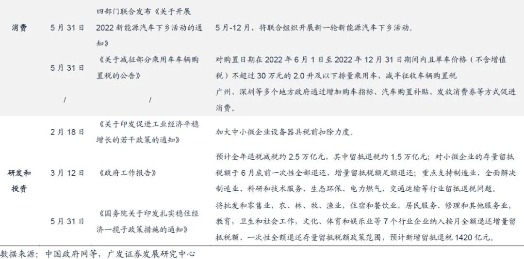 回顾上半年,“超前适度进行基础设施建设”、“支持各地从当地实际出发完善房地产政策”、“大力增加保障性租赁住房供给”、“促进消费持续恢复”、“实施新的更大力度组合式减税降费”、“增值税留抵退税力度显著加大”。今年上半年的政策主线相当清晰:稳基建、稳地产、支持研发和技术投资、促消费。考虑到疫情增量冲击,四条主线政策均在上半年适度加码,与权益资产定价主线相对应。
