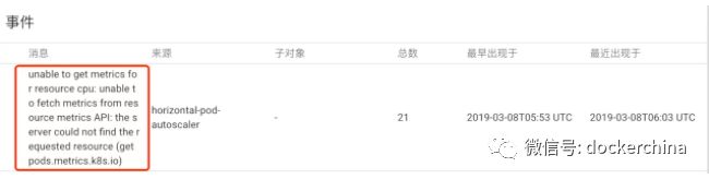 然而,kubectl get hpa显示cpu的当前指标还是unknown,郁闷,进到deployment里看一把日志: