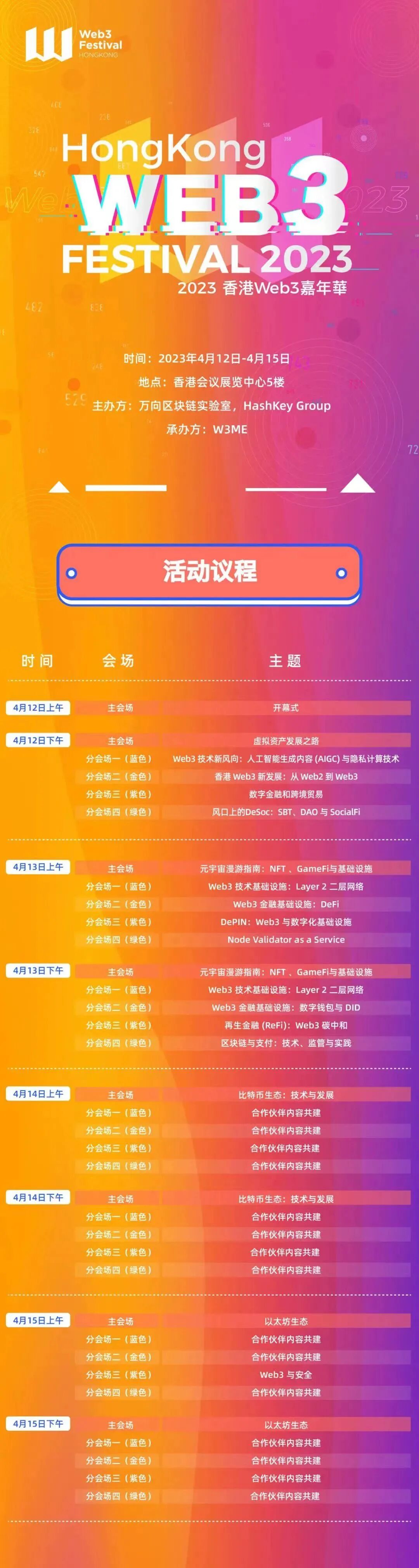 由万向区块链实验室、HashKey Group联合主办,数码港作为支持单位的“Web3.0应用展示日(Demo Day)”分会场活动将于4月14-15日香港Web3嘉年华活动期间登陆香港会议展览中心。即日起至3月12日23:59,点击文末阅读原文提交Google Doc表单,即可报名Web3.0 Demo Day,获取世界级舞台展示机会!