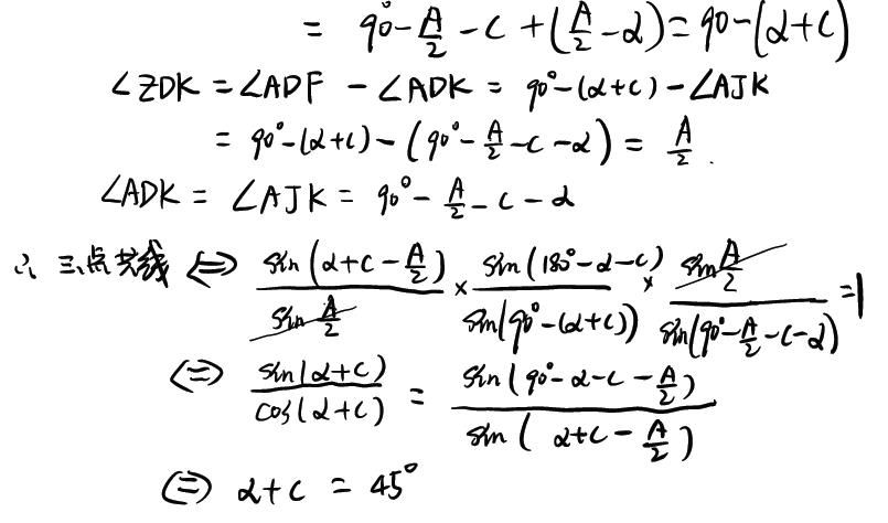 设△ADF,△ABC,△ADE的外心分别为X,O,Y,则(1)X,O,D,Y,A共圆,且直径为XY。(2)K,L,J,M共圆。