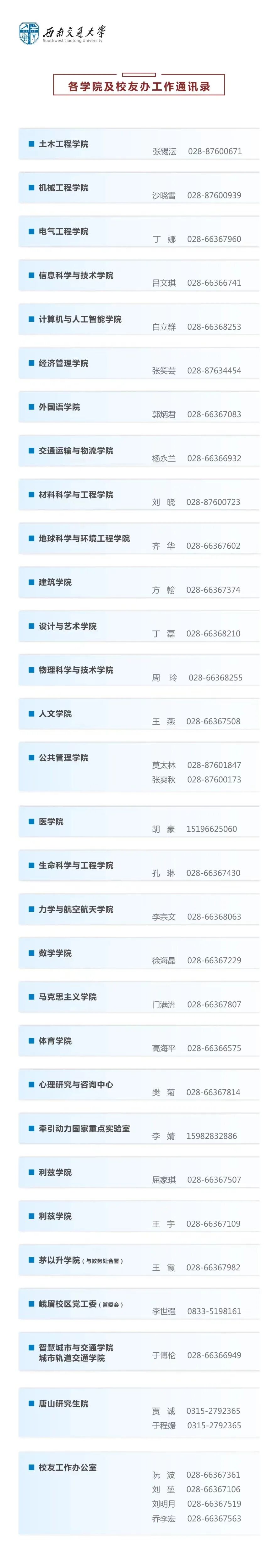 在此,附上各地校友会与各学院校友工作联系人名单,