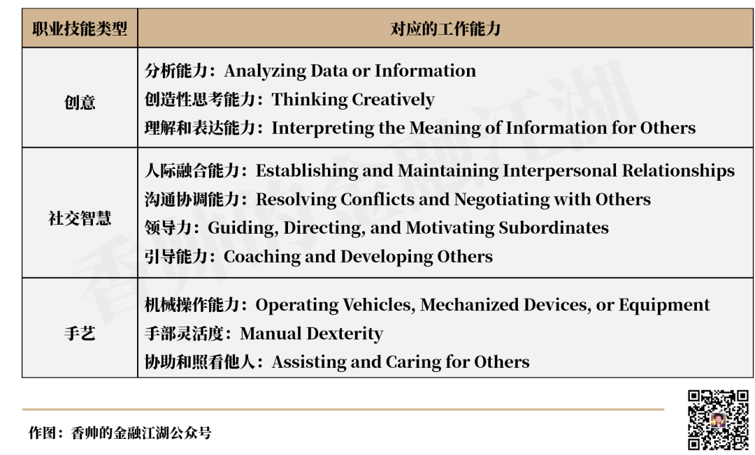 技能相关度就是根据我们前面列出的5个技能,不同的工作任务和这些技能之间都是有相关指数的。同时我们也加入了一些硬技能,比如听说读写,或者和是否需要编程、对科技方面了解程度等。通过这些硬技能和软技能的指数来计算相关度,如果两个职业相关度比较高,转行就会比较顺利。那在转行的时候也可以结合一下市场需求来做出判断。