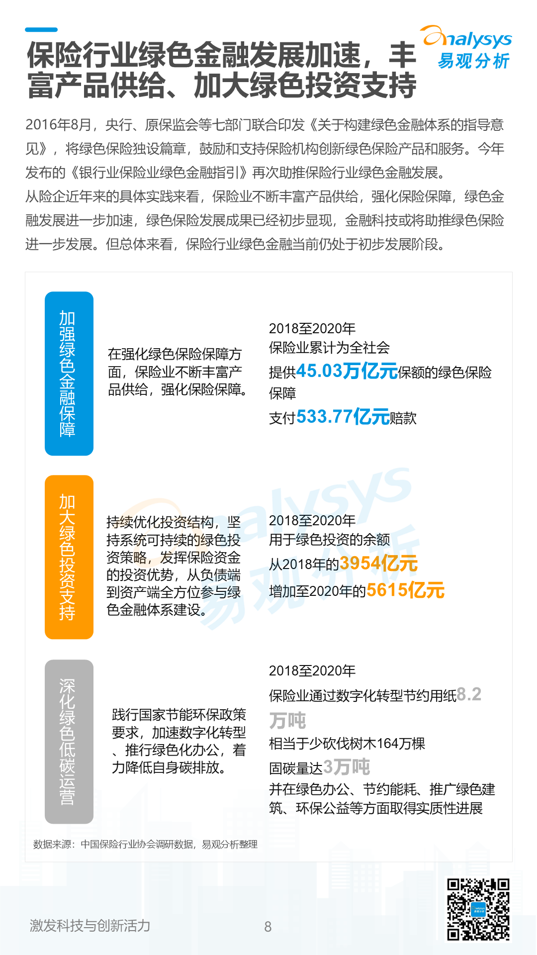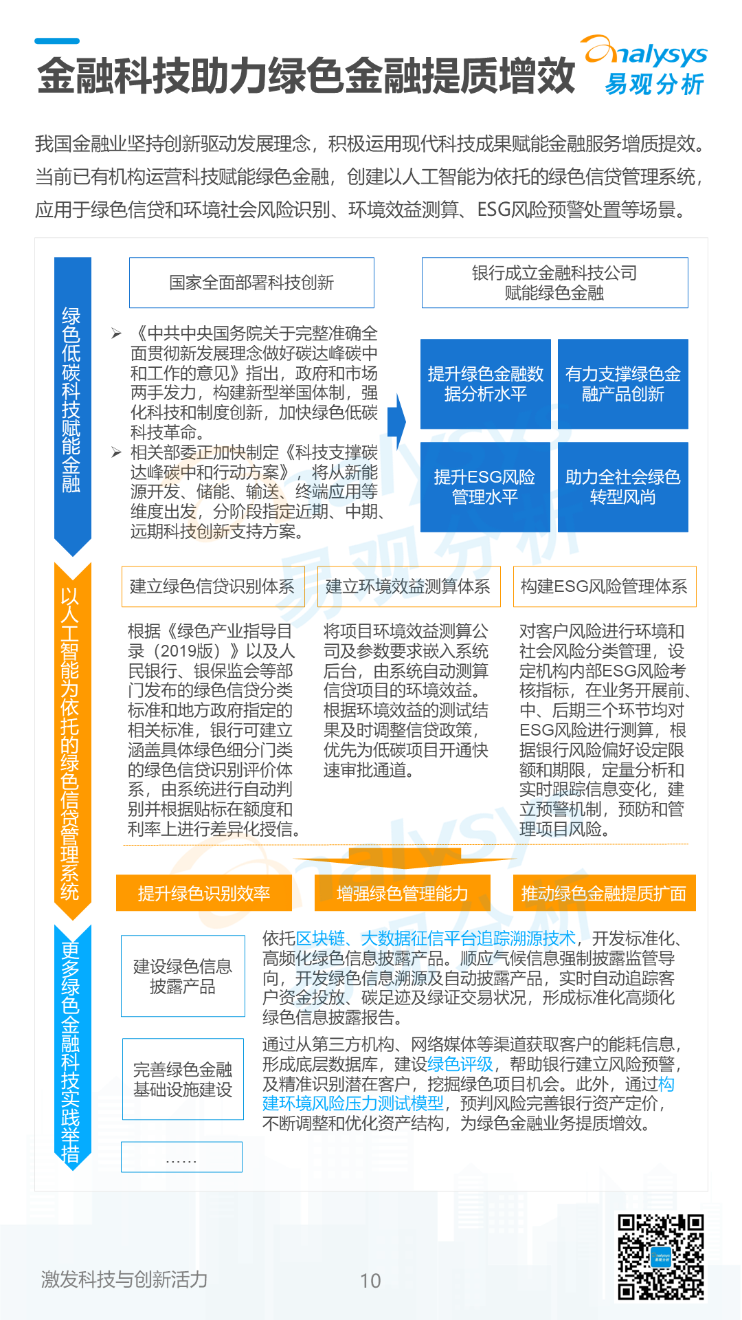 易观分析:《数字经济全景白皮书》浓缩了易观分析对于数字经济各行业经验和数据的积累,并结合数字时代企业的实际业务和未来面临的挑战,以及数字技术的创新突破等因素,最终从数字经济发展大势以及各领域案例入手,帮助企业明确在数字化浪潮下的行业定位以及业务发展方向。《数字经济全景白皮书》持续关注绿色金融发展。双碳战略驱动绿色金融发展,科技与绿色金融深度融合。当前多层次绿色金融产品和市场体系初步形成,助推全面绿色转型,绿色金融市场规模不断扩大,银行、保险等金融行业持续进行绿色金融产品创新,金融科技助力绿色金融提质增效。