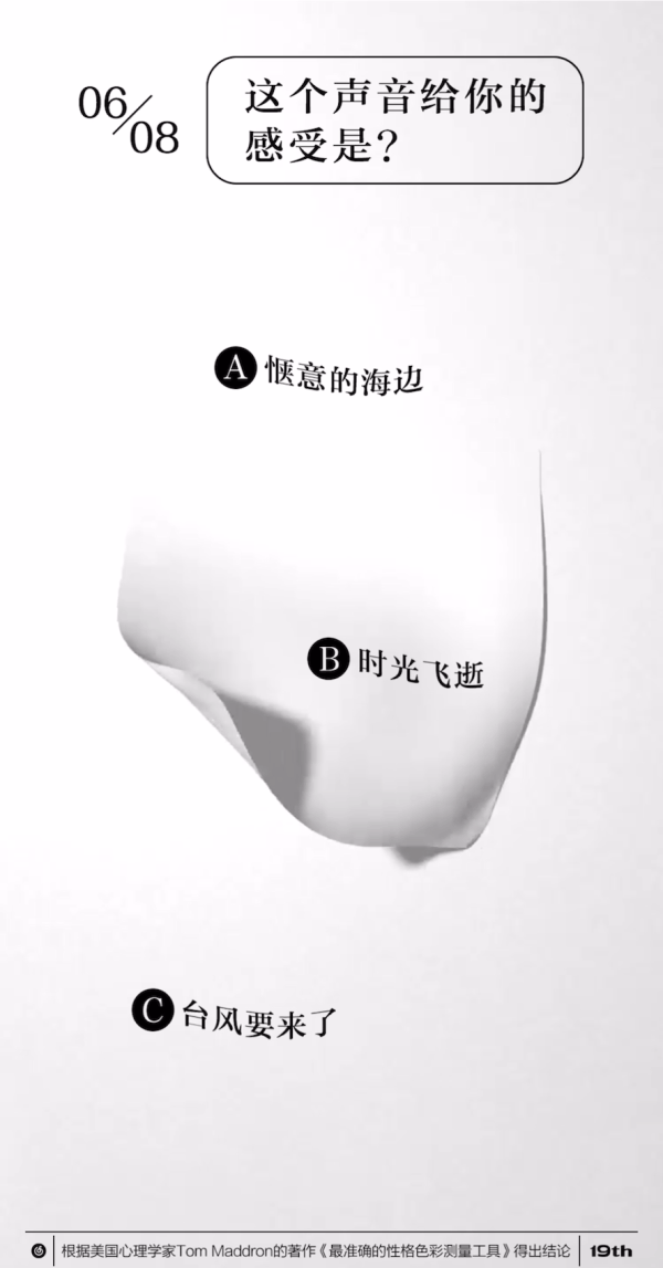 也就是把复杂的心理测试问题通过情境,融入“声音”与“颜色”多种元素,以具象化的问题来折射人们潜在的心理意识。