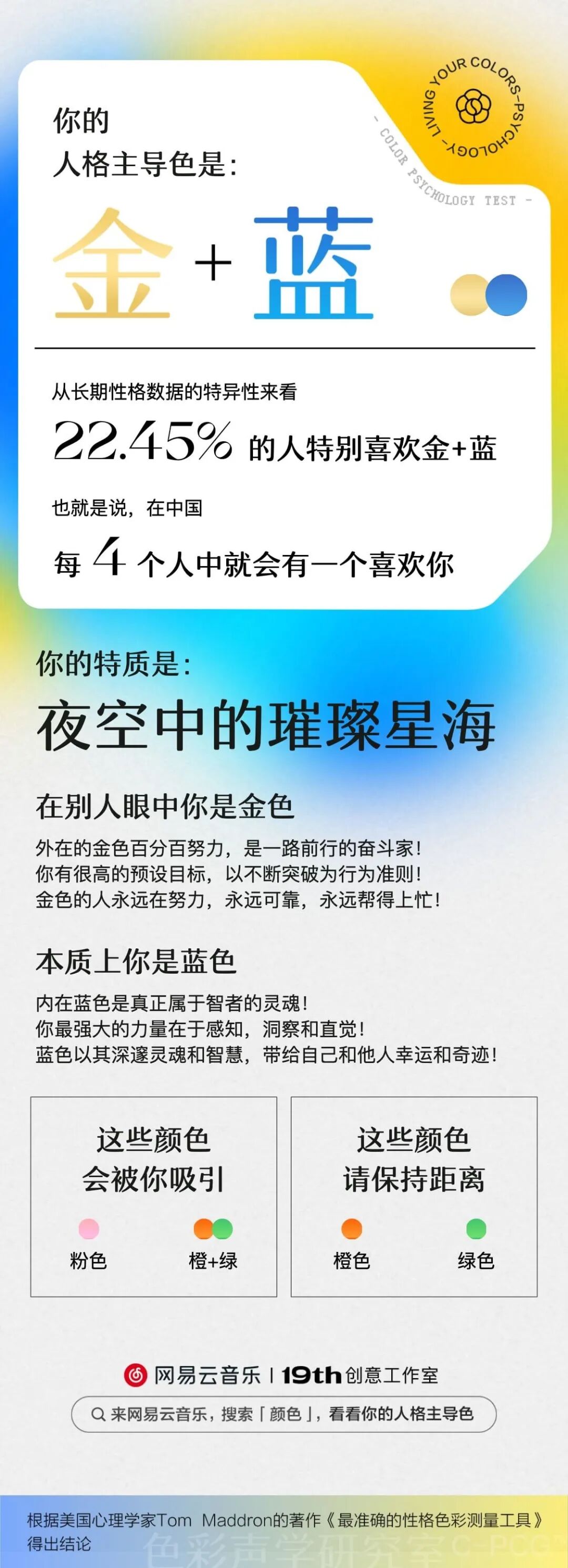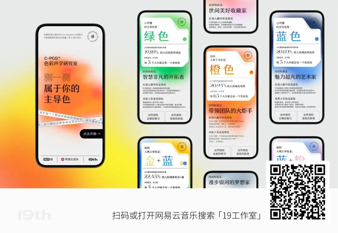 参与者既可以在测试过程中获有趣的游戏感,又可以获得对个人性格的精准解读,并通过“亲近色、远离色”开展社交话题,让“心理学”成为潮流文化一般的社会议题。