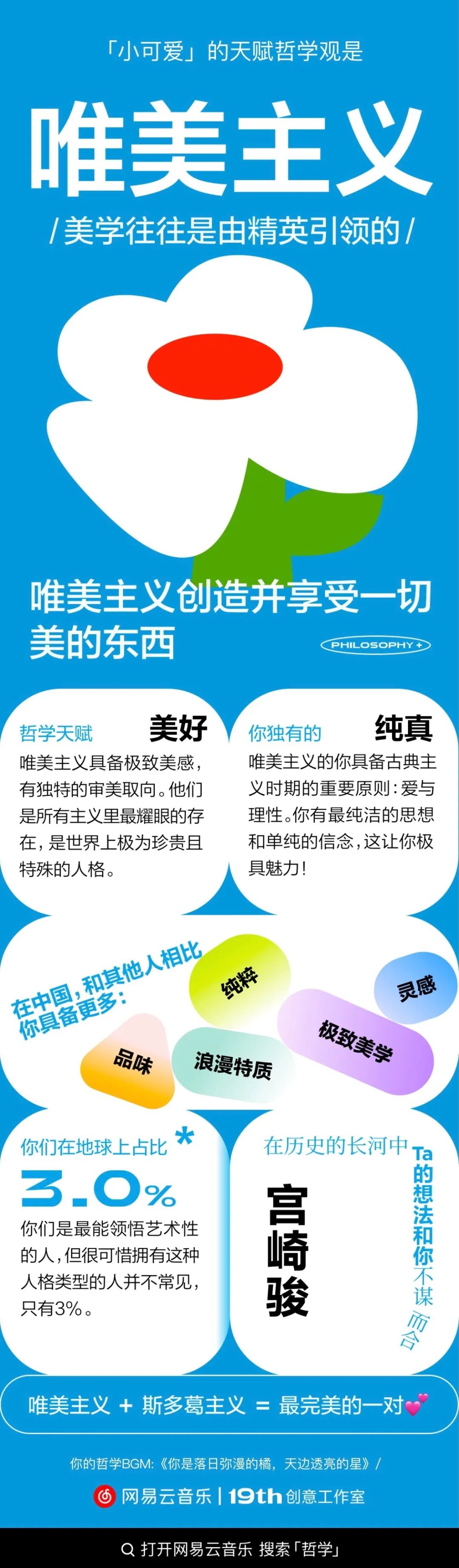 小强:我们也发现一些网友会说,网易云音乐的测试每次都能刷屏。但测试只是形式,我们来把它拆解一下。“会夸”这个词可能用在我们身上,还算合适。夸的背后其实是“关于这个时代年轻人的人格解读、知道用什么打动用户、怎么形成口碑传播”。