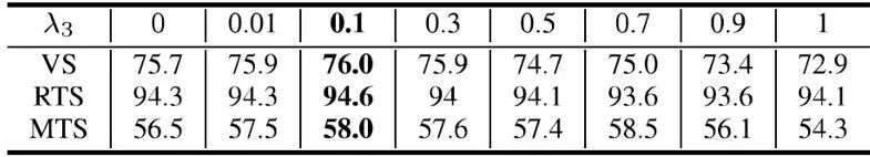 从表2可以看出,三元组损失主要作为辅助任务时效果最好。![]()