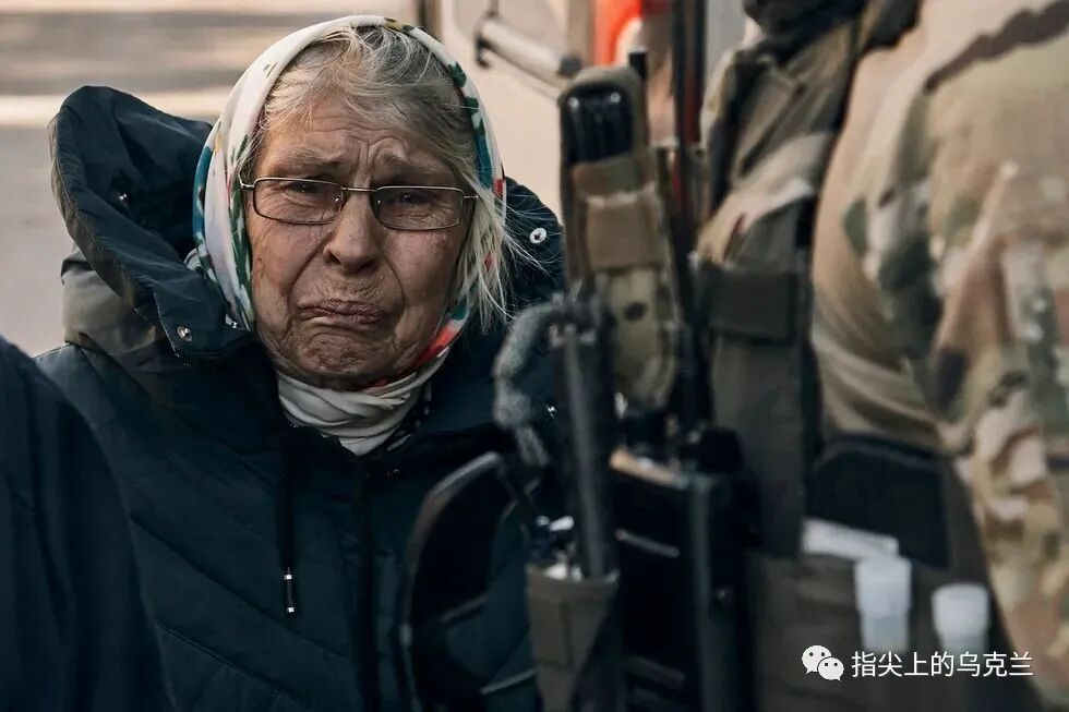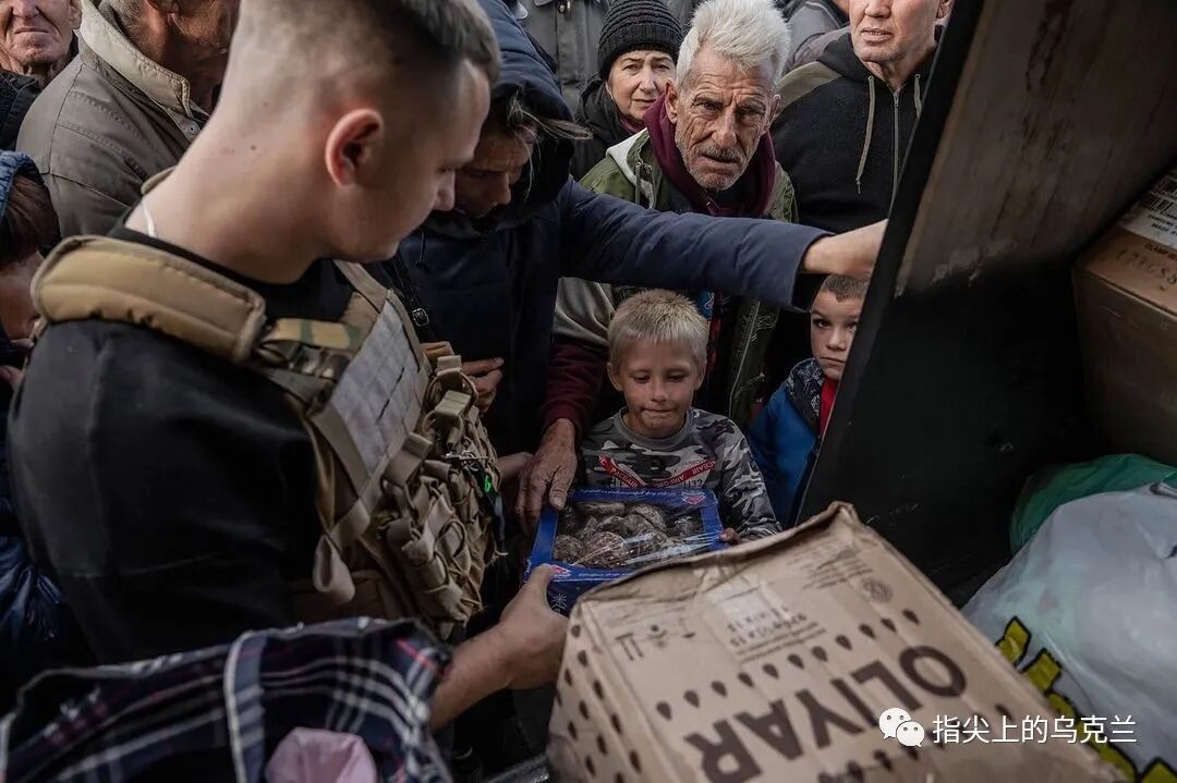乌克兰军人继续在收复的区域向民众发放生活物资