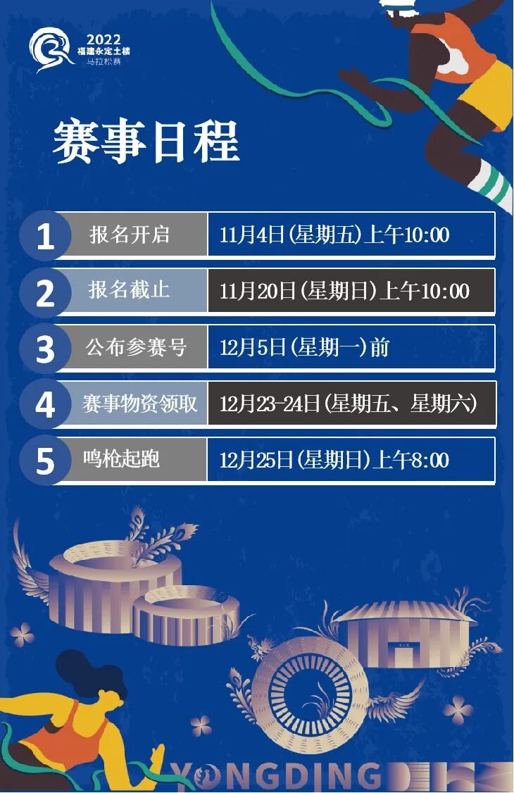 2022福建永定土楼马拉松赛,将于12月25日8:00鸣枪起跑,报名于今天10点正式启动。不抽签,先报先得。