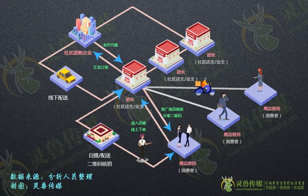 “社区拼团”模式——以社区为节点,线上建立社群、线下完成交付,平台提供供应链、物流仓储及售后支持。