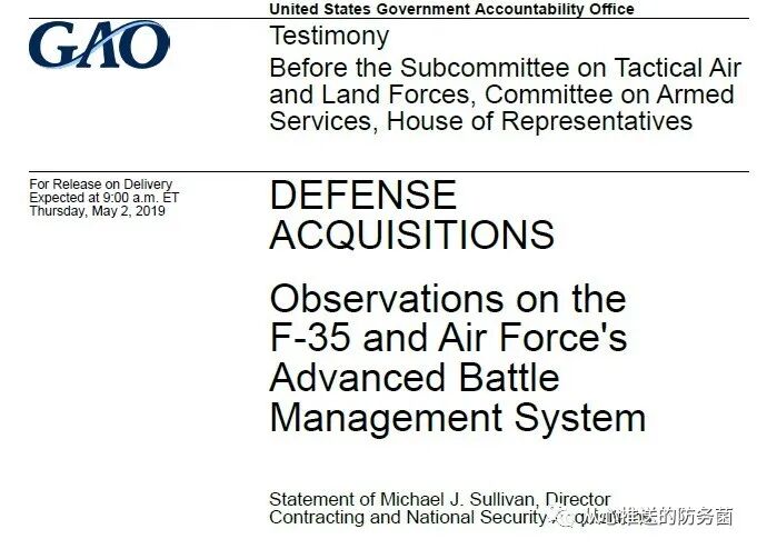美国政府问责办公室(GAO)于2019年5月发布的题为《对F-35和空军‘先进作战管理系统’的观察》的报告