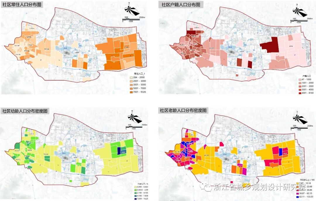 通过对比分析社区常住人口、户籍人口、一老一小人口分布情况,对吴兴区人口现状进行梳理,得出吴兴区人户分离现象显著,老城区常住人口密集且老龄人口集中分布,织里镇童装产业平台人口净流入多,与人口年龄结构挂钩的教育设施、托幼养老设施宜结合人口分布情况布局。