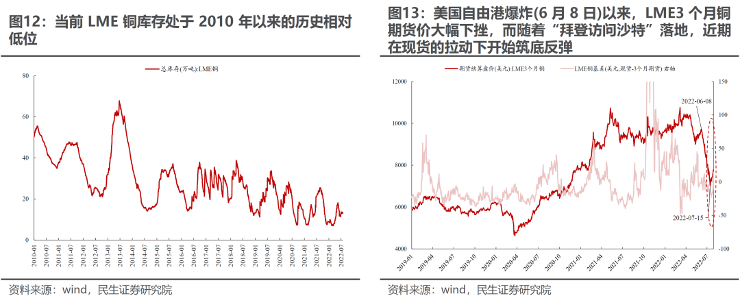 同时,欧洲经济数据超预期(前期本身就是复苏遇到了能源短缺),正开始修正工业金属的担忧,而铜价其实是在现货驱动下低库存驱动的上涨,表面供需仍然紧张,实物资产仍需重估。美国经济两个季度环比负增长,进入“技术性”衰退,美元进一步走弱,有利于大宗商品反弹。这也验证了我们此前讨论的美国进入衰退后大宗商品是上涨而非下跌的观点。